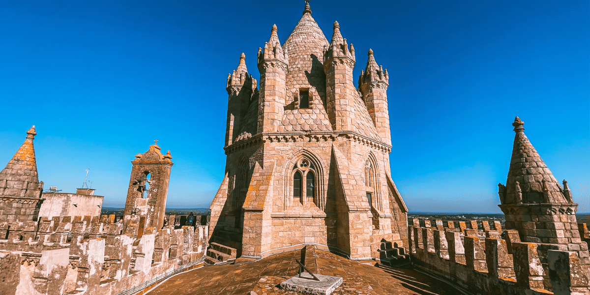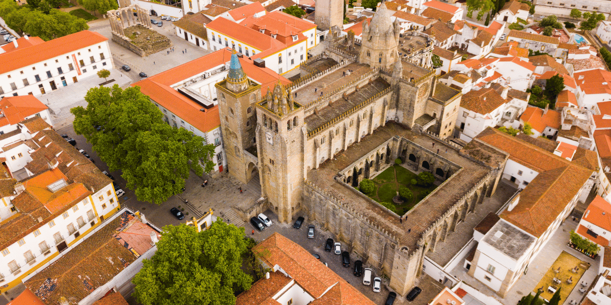 Encantos Arquitetônicos: Admire a grandiosidade da Catedral de Évora, a exuberância da Capela dos Ossos e a elegância da Praça do Giraldo, além disso cada esquina é um convite para apreciar a arquitetura única e os detalhes artísticos.